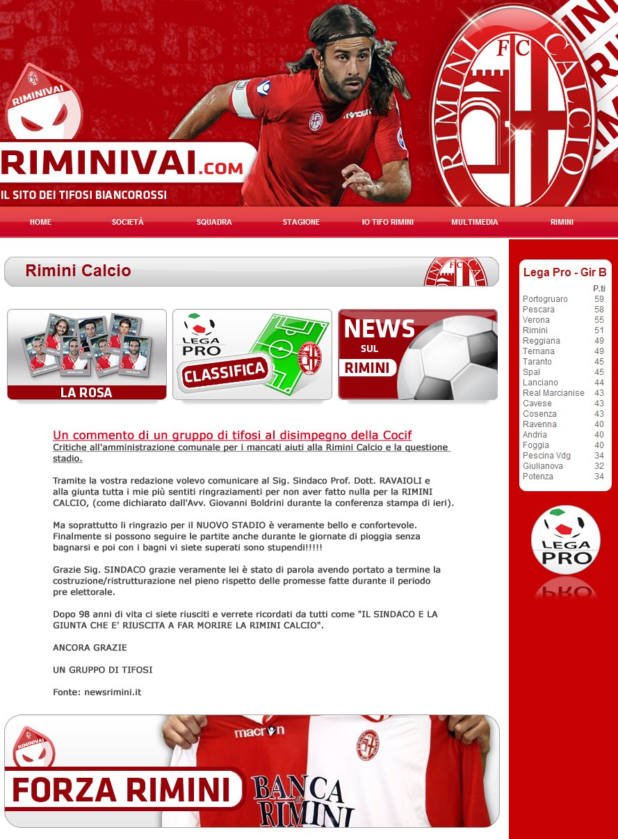 Reprodução do site de torcedores do Rimini, incrédulo após a desistência oficial do clube: várias outras torcidas derrubaram, ou ainda irão derrubar, as mesmas lágrimas (riminivai.com)