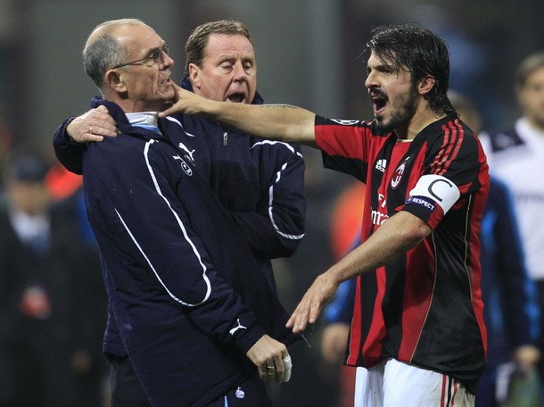 O Milan perdeu o jogo e a calma: Gattuso agride Joe Jordan, ex-jogador do clube e membro da comissão técnica do Tottenham (Reuters)Texto por Leandro Gomes, do Ortodoxo e Moderno.