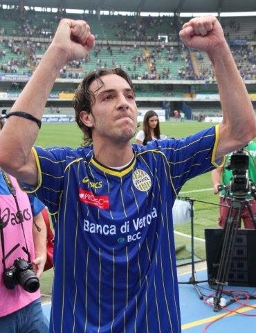 No primeiro jogo da decisão, em Verona, o Hellas reverteu a vantagem da Salernitana graças à atuação inspirada do centroavante Nicola Ferrari, que marcou dois gols, ambos de pênalti, em momentos capitais da partida: o primeiro, aos 17 minutos, esfriou a equipe de Salerno, que já tivera duas oportunidades de marcar; e o segundo, conquistado por ele mesmo aos 22 minutos da etapa final, levou à expulsão do goleiro adversário e selou a vitória. No jogo de volta, a equipe vêneta festejará a promoção em caso de empate ou derrota simples. Para a Salernitana, servirá uma vitória por três de diferença; um triunfo com dois gols de vantagem levará a disputa para a prorrogação, em que a formação granata terá a vantagem do empate.