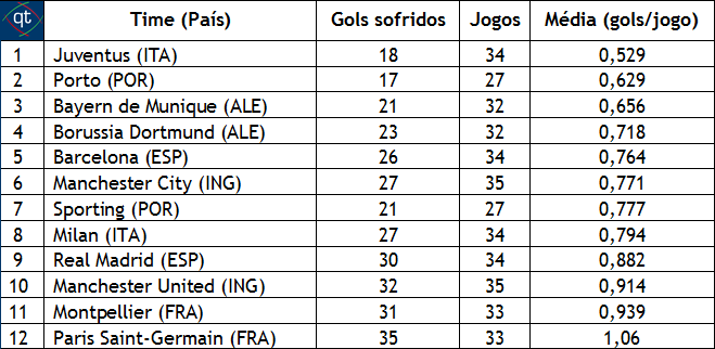 *computadas apenas estatísticas dos campeonatos nacionais de Alemanha, Espanha, França, Inglaterra, Itália e Portugal. Clique para ampliar.