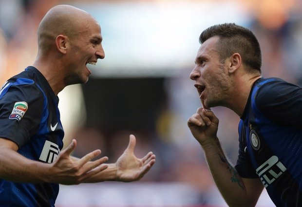 No primeiro gol, Cambiasso tocou para Cassano marcar pela quinta vez em oito jogos. Poder de decisão de Fantantonio pode pesar positivamente para a Inter incomodar o primeiro escalão (AP)