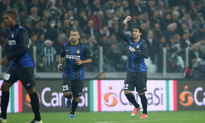 Um dos nomes do jogo, Milito marcou dois e deu fim à série de 49 jogos de invencibilidade da Juve (Corriere dello Sport)