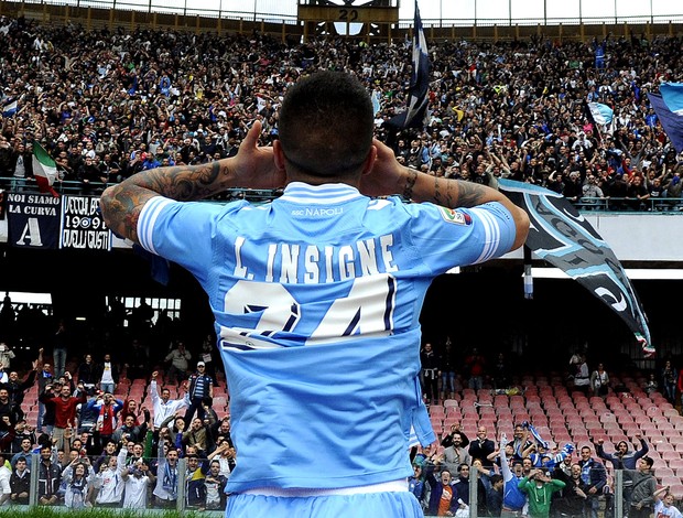 Napolitano, Insigne comemora com a torcida. Anos antes, estava no lugar deles (AP)