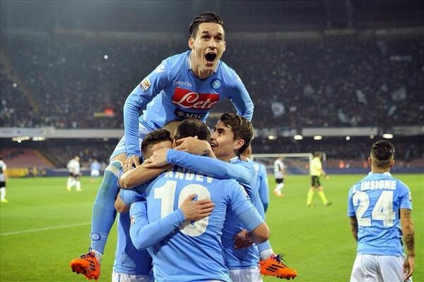 O Napoli venceu a Juventus por 2 a 0 e praticamente garantiu a vaga na próxima edição da Liga dos Campeões. O primeiro tempo foi todo napolitano. Henrique atrapalhou Asamoah, subindo demais pelo corredor direito nos 15 minutos iniciais. Ainda mais com Callejón aprofundando exatamente na mesma posição e Higuaín segurando Bonucci dentro da área. O gol do espanhol saiu após lançamento de Insigne, da intermediária. Em posição irregular, ele ganhou de Asamoah e venceu Buffon. O goleiro da Juventus, até aquele momento, havia realizado três excelentes defesas. A Velha Senhora não conseguia sair para o jogo principalmente porque Hamsík não desgrudou de Pirlo. Tanto é que, ao deixar o volante livre por cinco segundos, Pirlo iniciou a jogada que terminou em um cruzamento perigoso de Lichtsteiner. No restante da partida, porém, com as grandes atuações de Insigne e Callejón pelos flancos, segurando os alas juventinos, só deu azul.
