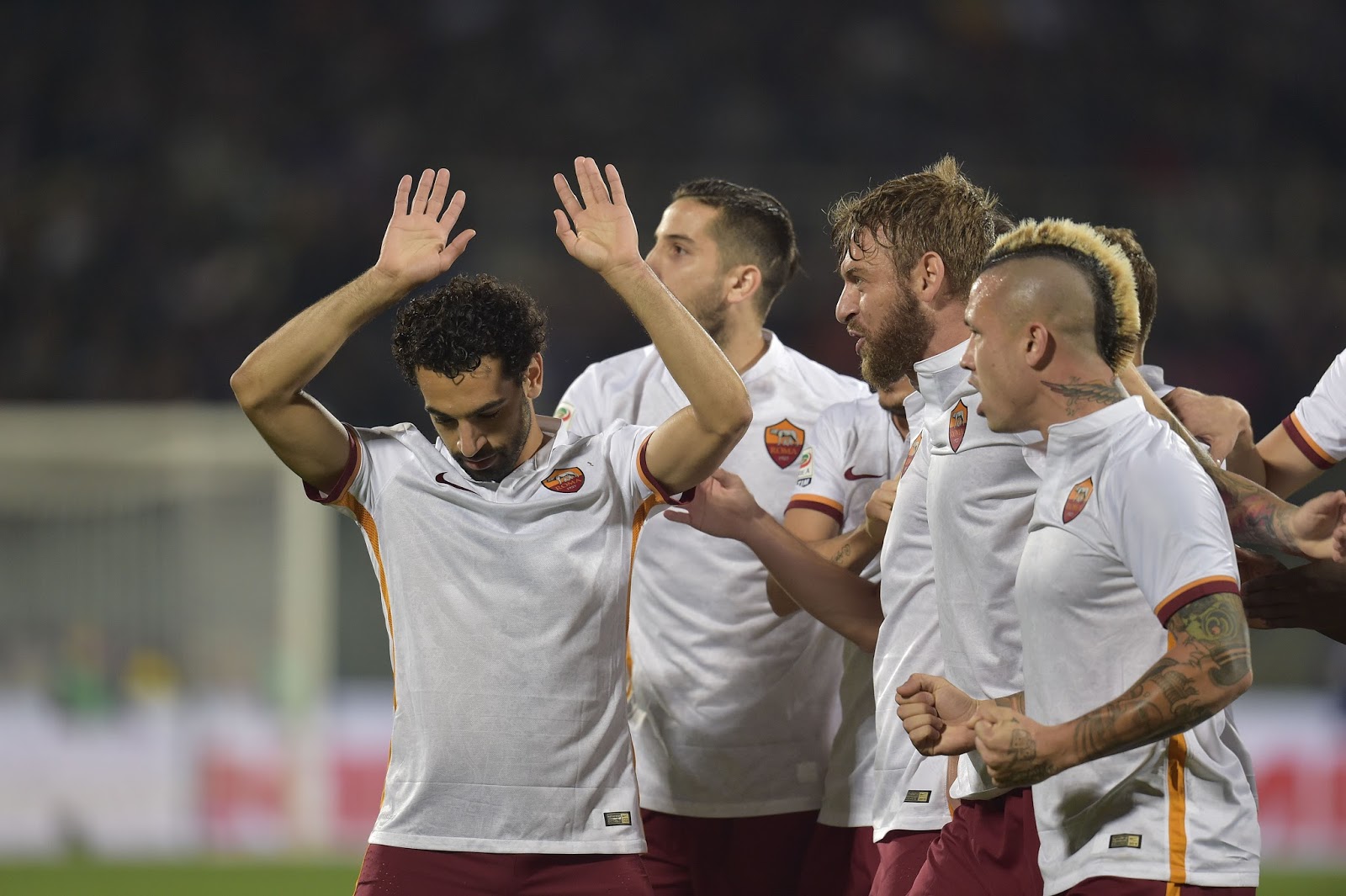 Salah foi o protagonista da vitória contra a Fiorentina e colocou a Roma na liderança da Serie A (Getty Images)