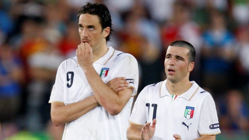 Pela seleção da Itália, os dois tiveram sorte diferente. O mais lógico até poderia ser imaginar que um jogador de talento mais refinado, como Di Natale, teria mais sucesso e longevidade com a camisa azzurra, mas não foi isso que aconteceu. Totò nunca brilhou com a Nazionale: participou de duas Euro e um Mundial, mas foi coadjuvante, nunca decisivo. Toni, por sua vez, marcou época a seu modo: foi o titular na campanha do tetracampeonato mundial em 2006, barrando Pippo Inzaghi, e depois não conseguiu repetir as mesmas atuações.