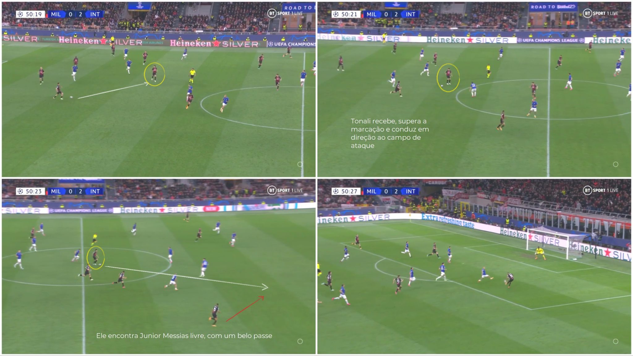Tonali criou a grande chance do Milan no jogo (BT Sport 1/editada)