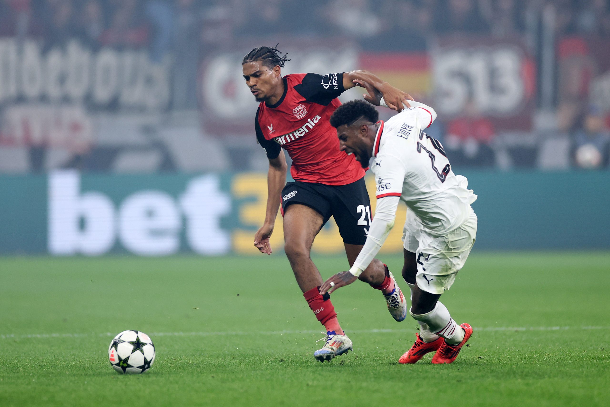 Uma cochilada de Emerson Royal permitiu que o Bayer Leverkusen abrisse o placar contra o Milan (Getty)